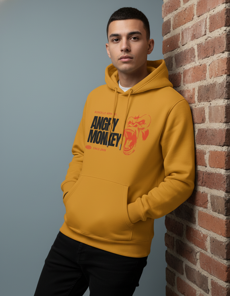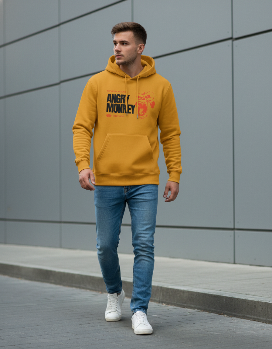 Classic Hoodie Mustard Yellow Angry Monkey
