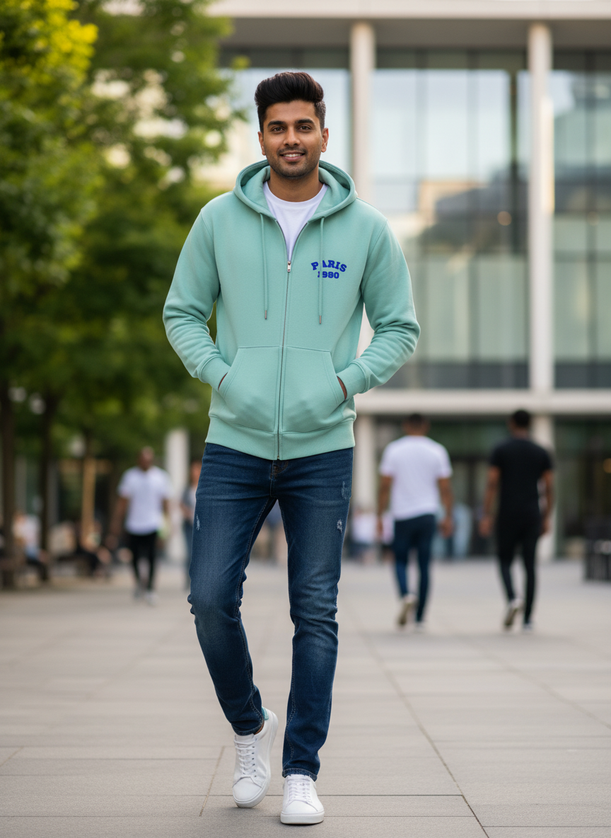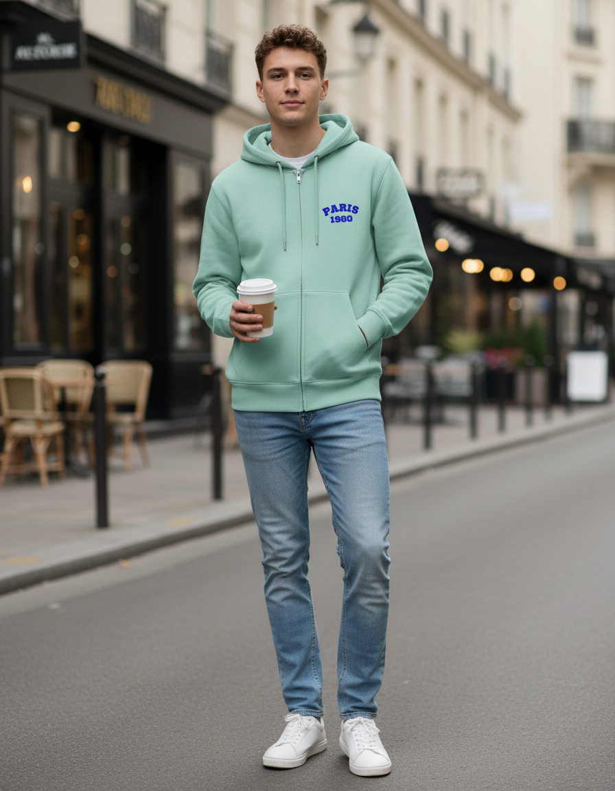 Classic Zipper Hoodie Mint Paris 1980